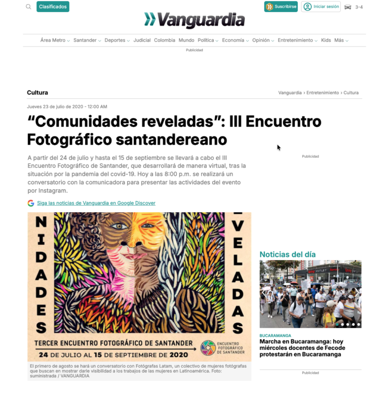 Este proyecto nace desde una fotógrafa santandereana con la intención de brindar herramientas sobre lenguaje visual, partiendo de la interacción entre personas interesadas en el tema y expertas fotógrafas. En Bucaramanga y el departamento.